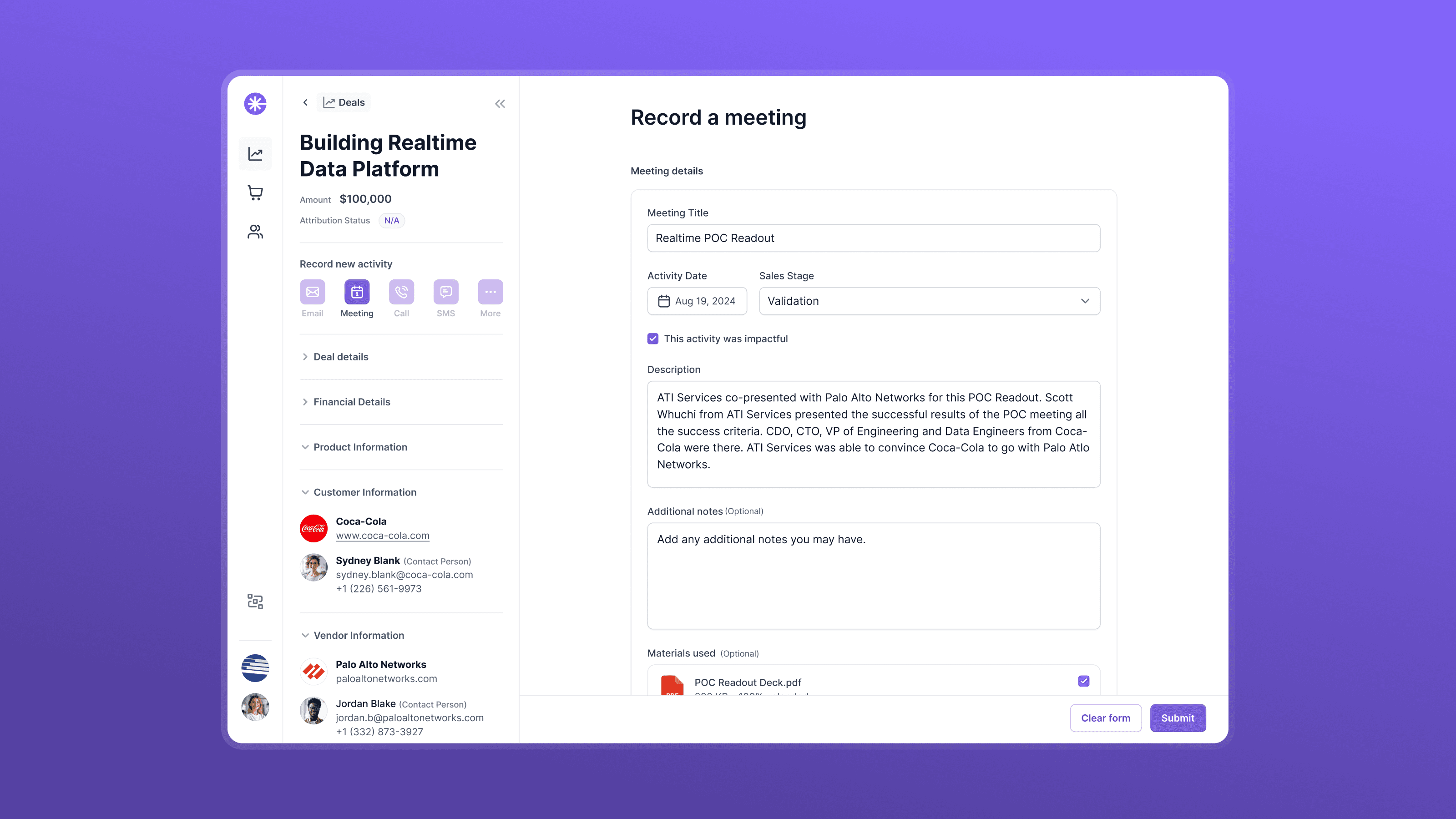 The app posed its own set of design challenges. It needed to house a large amount of sales information, which required careful consideration to avoid clutter. So my focus was on creating clear, intuitive layouts that made it easy for users to log and verify interactions efficiently.