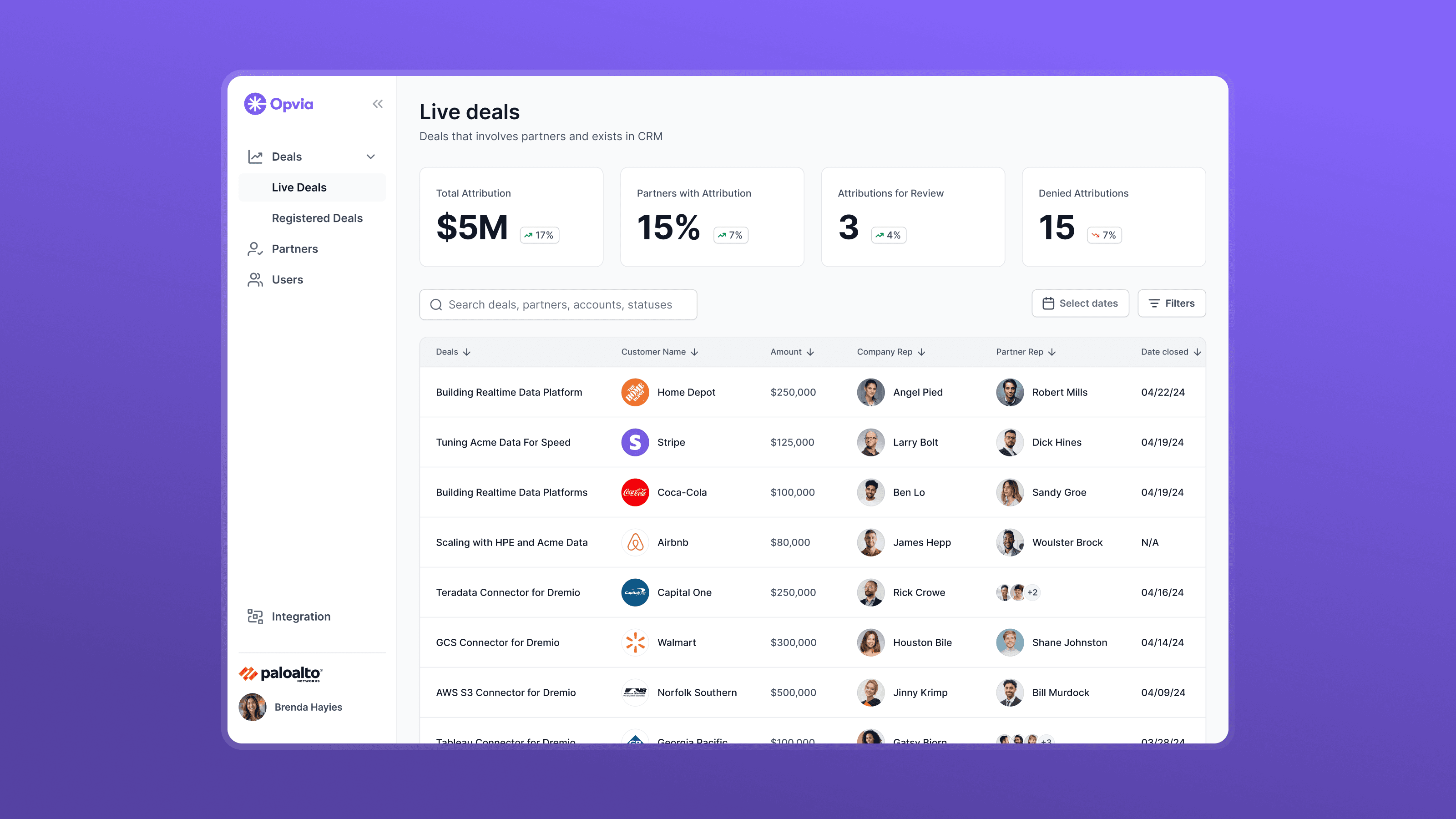Opvia, an early-stage SaaS startup, set out to break this cycle of lost revenue and disputes by creating a platform that would bring clarity and fairness to partner sales attribution, but with a limited budget, they needed a fully designed platform in just three weeks to present to potential customers and secure buy-in before approaching investors. Plus a logo and lean visual identity to go with it.