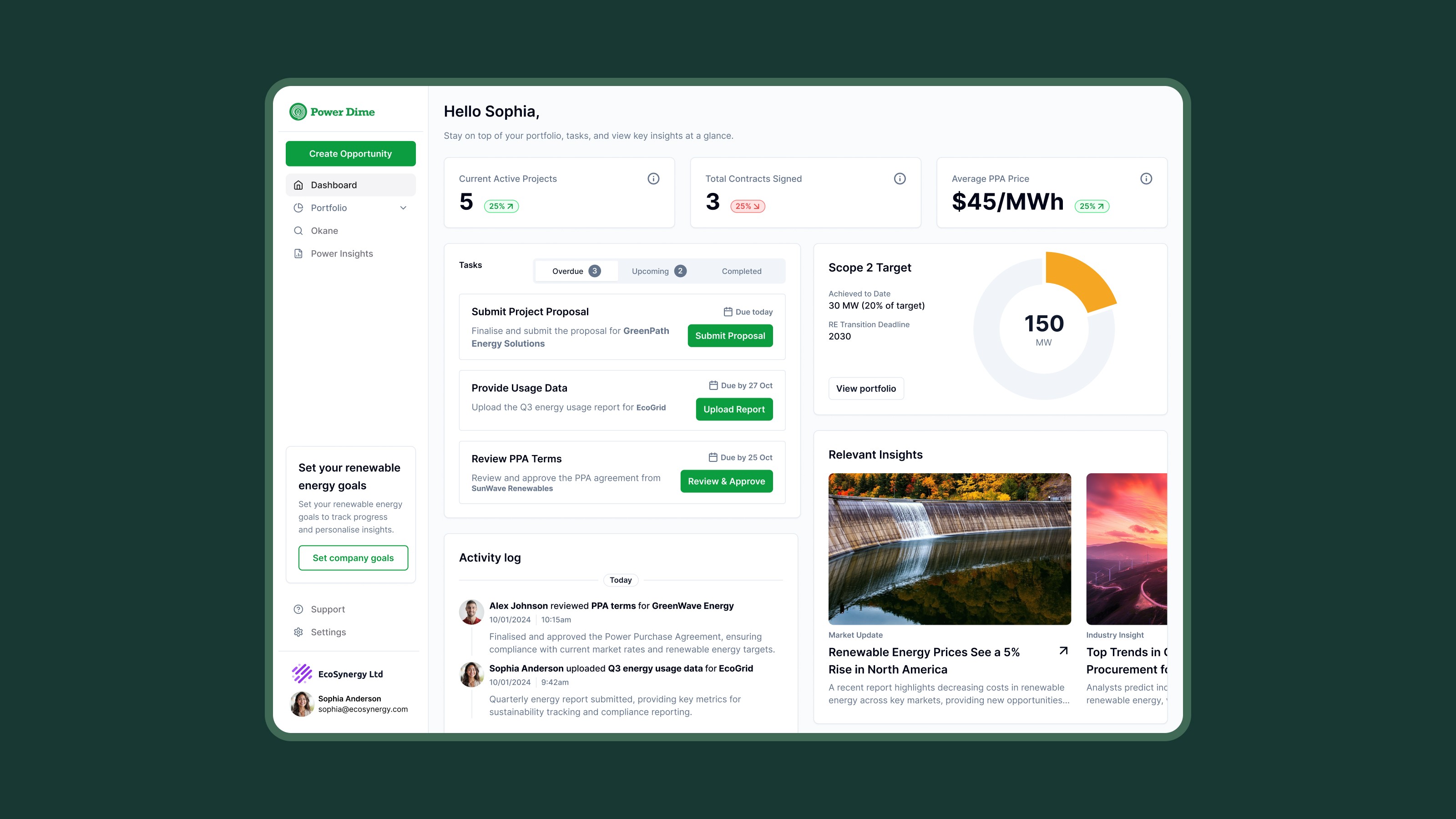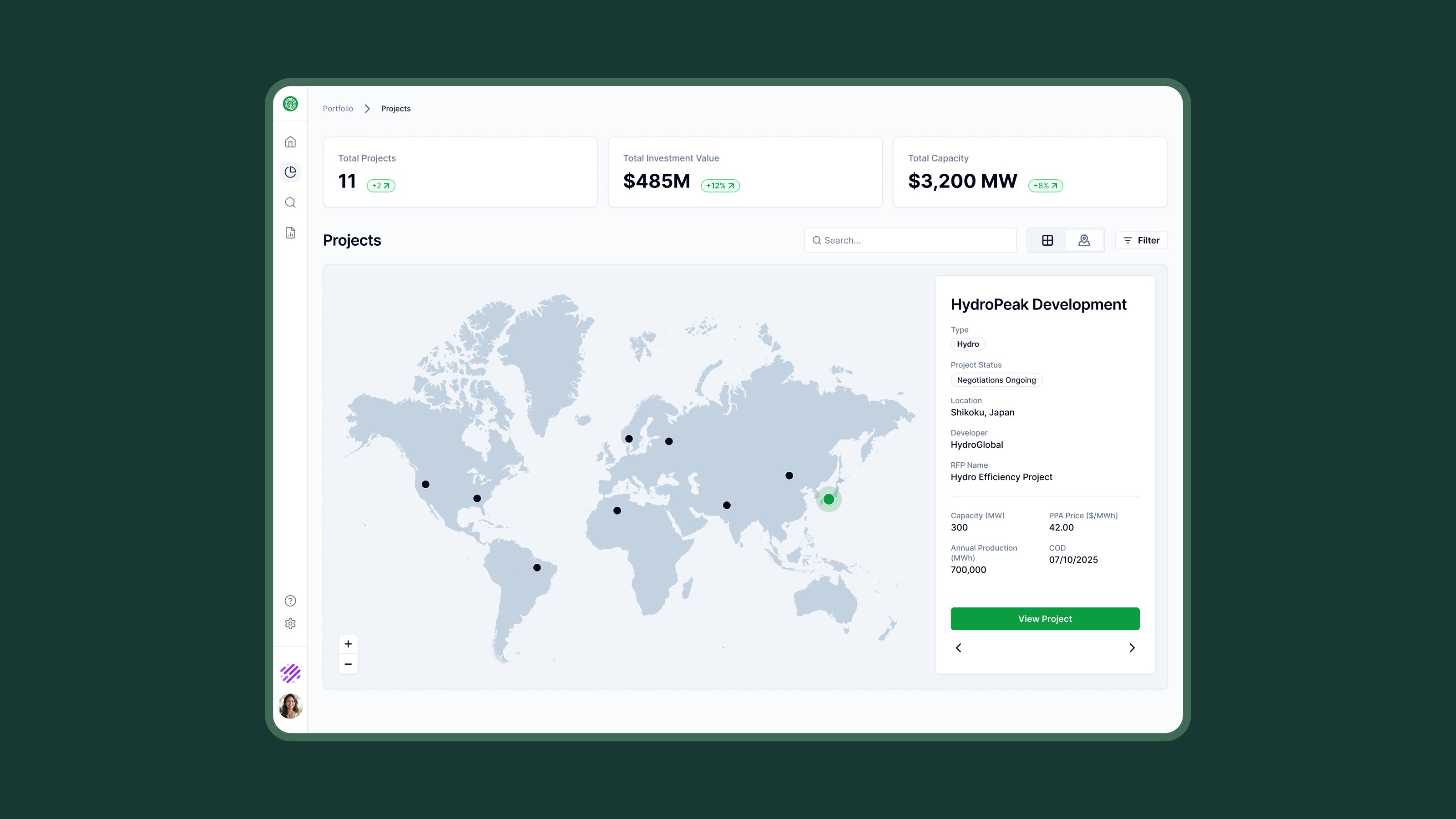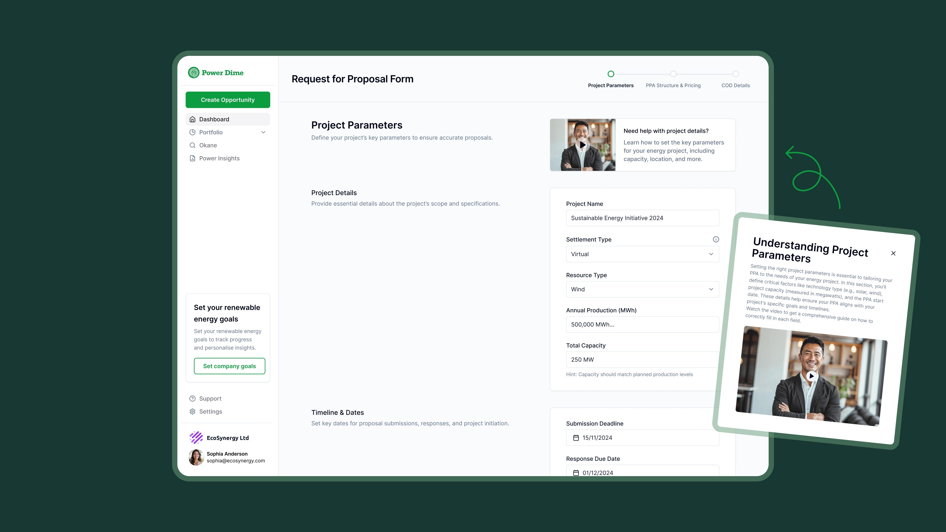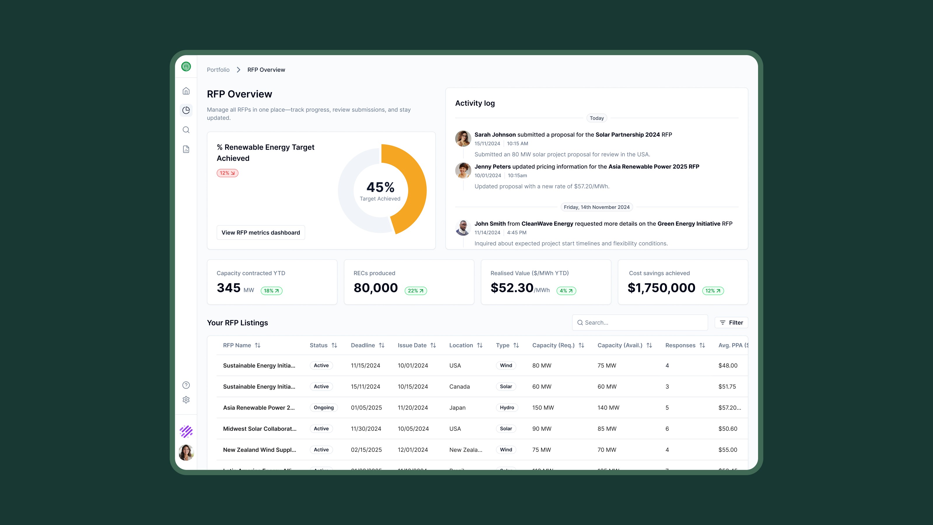 The goal was to create a platform where corporate buyers could submit RFPs, evaluate pitches from energy developers, and navigate the complex PPA and VPPA contract process. A high-stakes system that needed structure, clarity, and an intuitive user experience.